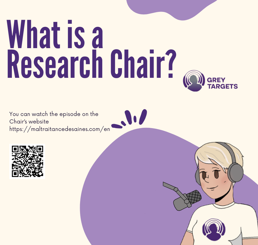 In this episode of Grey Targets, Mélanie Couture explains what is a Research Chair and spefically what is the Research Chair on Mistreatment of Older Adults
