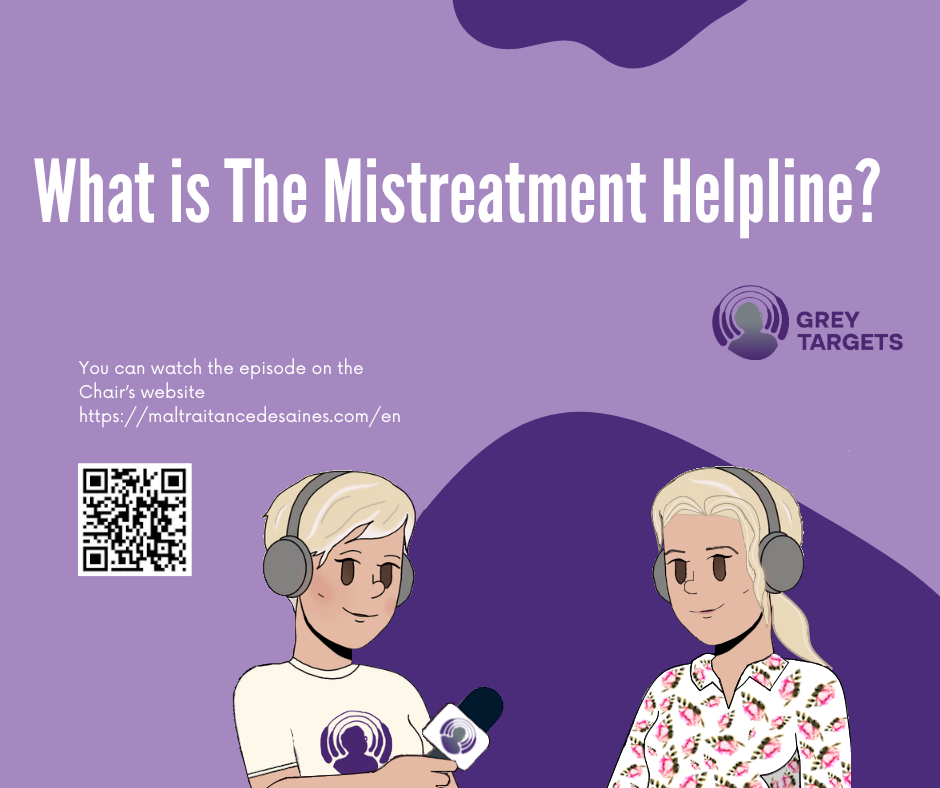 In this episode of Grey Targets, Mélanie Couture interviews Lidia Volvich about The Mistreatment Helpline available for residents aged 18 and older in the province of Quebec.