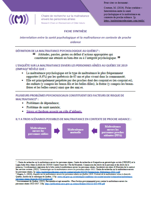 Outils pédagogiques - FICHE SYNTHÈSE La maltraitance en contexte de proche aidance : Qui maltraite ?